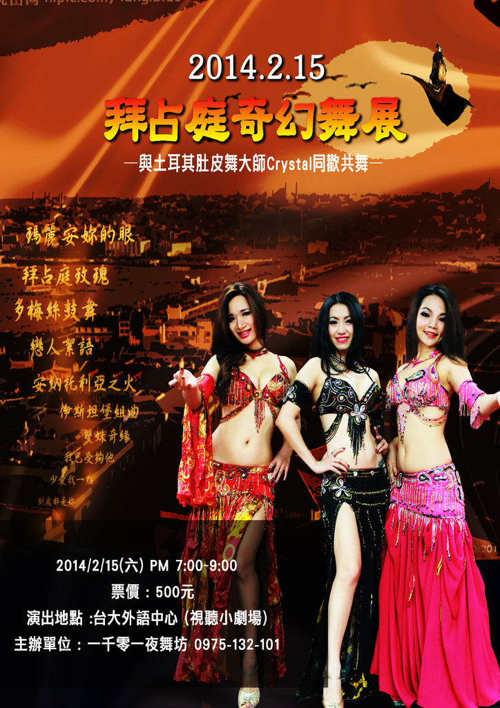 此次將由Crystal老師親自帶領一千零一夜舞坊,呈現精采的肚皮舞演出,為喜洋洋馬年揭開序幕!!
